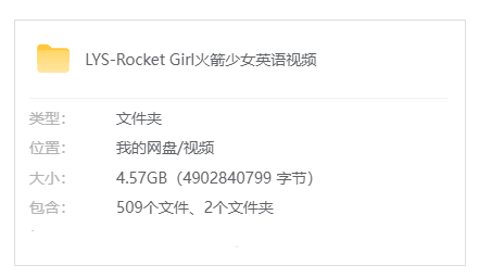 英语启蒙《Rocket Girl/火箭少女》音频+视频+故事书(MP3/MP4/PDF/SRT/4.57GB)音频合集【百度云网盘下载】,资源为《Rocket Girl/火箭少女》音频+视频+故事书资源合集(共计4.57GB大小),音频为MP3格式,百度网盘压缩包,需电脑下载以后解压使用(手机/平板无法解压)!